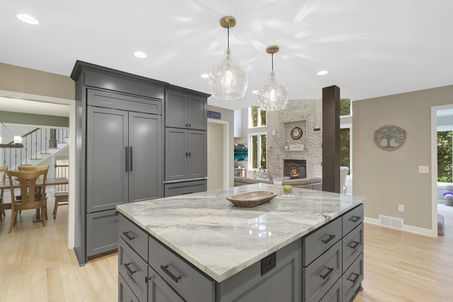 Although the layout did not change, we completely gutted the kitchen and rebuilt it from the ground up. We installed new cabinets, countertops, appliances, and finishes to refresh the space. The larger center island anchors the room, and the classic kitchen triangle links the sink, stovetop, and fridge. Now, the kitchen feels open, bright, and very functional.